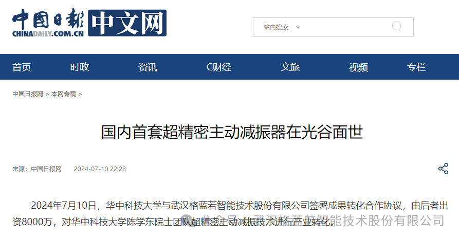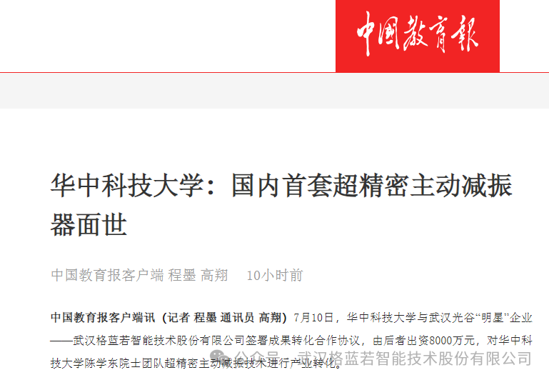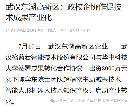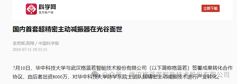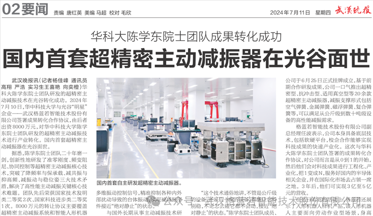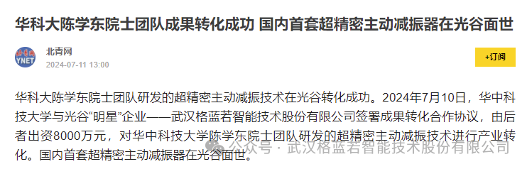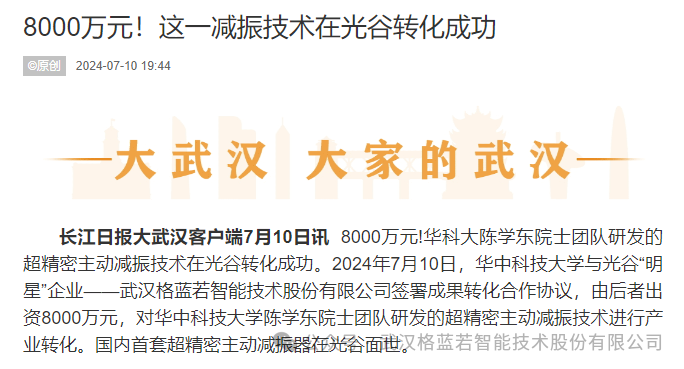 2024年7月10日,華中科技大學(xué)與公司簽署成果轉(zhuǎn)化合作協(xié)議,由公司出資8000萬(wàn),對(duì)華中科技大學(xué)陳學(xué)東院士團(tuán)隊(duì)超精密主動(dòng)減振技術(shù)進(jìn)行產(chǎn)業(yè)轉(zhuǎn)化。