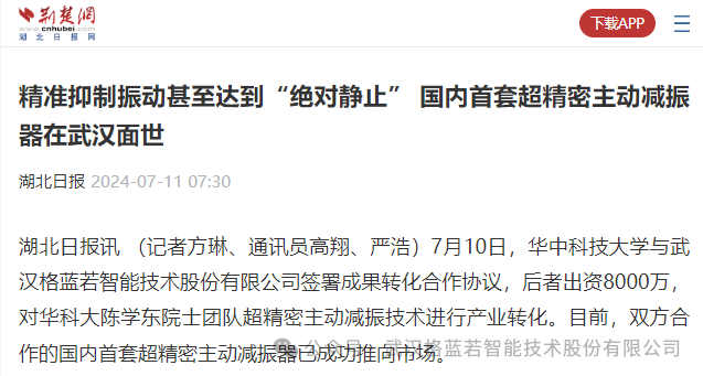 公司超精密主動(dòng)減振器面世,受媒體廣泛關(guān)注